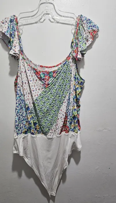 Linda panty-blusa. Excelente panty blusa con broches , sin mangas, fresca y muy cómoda en color blanco con 💐 flores multicolor.