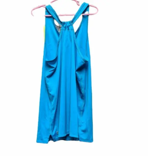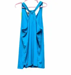 PLAYERA TIPO HALTER AZUL. PLAYERA TIPO HALTER,MARCA ALL IN MOTION, TALLA 10/12 AÑOS,100% POLIESTER RECICLADO,ABSORBE HUMEDAD, PROTECTOR SOLAR 50+, 27 CM DE HOMBRO A HOMBRO, 40.5 CM DE AXILA A AXILA, 60.5 CM DE LARGO, LETRAS TORNASOL