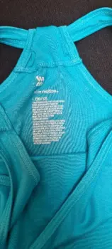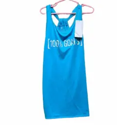 PLAYERA TIPO HALTER,MARCA ALL IN MOTION, TALLA 10/12 AÑOS,100% POLIESTER RECICLADO,ABSORBE HUMEDAD, PROTECTOR SOLAR 50+, 27 CM DE HOMBRO A HOMBRO, 40.5 CM DE AXILA A AXILA, 60.5 CM DE LARGO, LETRAS TORNASOL