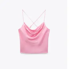 Top de tirantes ZARA Talla M Top de satín, tirantes finos ajustables, cruzados en la espalda Medidas tomadas por un solo lado: *Axila-Axila 40 cm *Largo 40 cm (desde el inicio de axila hacia abajo) ⚜️ Por favor si vas a ofertar que sea solo porque tú compra será segura ⚜️