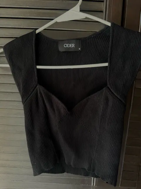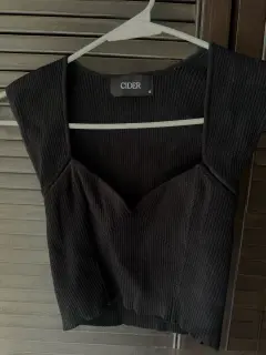 Top negro. En la etiqueta dice S pero viene reducido más bien es cm XS