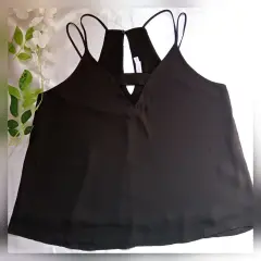Top negro, elegante y femenino. Top negro, elegante y femenino, con finos tirantes y lindo escote, marca LushTalla MCaracterísticas:-Forro-Corte en A-Tela fresca y comodaMedidas tomadas por un solo lado:-Largo 59 CM-Axila-axila 48 CM