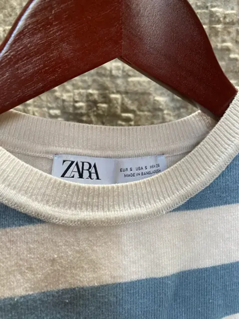 Top rayado azul Zara🩵. Top tejido, rayas azul cielo con blanco. Sin mangas, cómodo y fresco. Tiene detalles de uso/manchitas visibles. Ideal para uso casual o casa🩵🤍