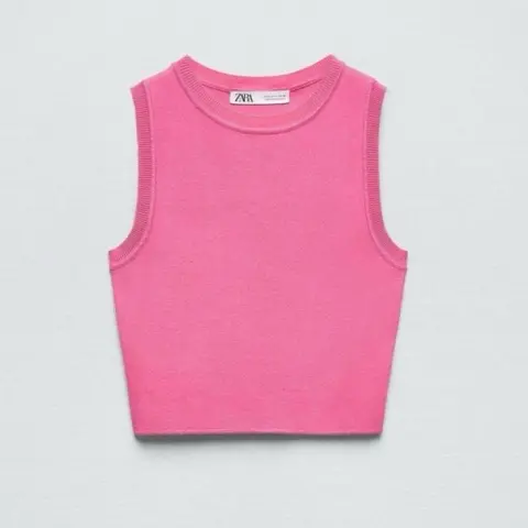Top Zara rosa sin mangas, modelo viral. Tiene unas manchitas pequeñas. Tela suave, básico y fácil de combinar.✨