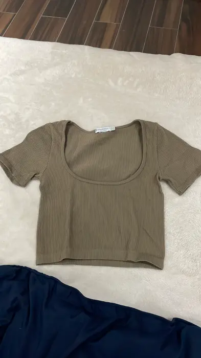 Top Stradivarius. Top cafe, con cuello un poco escotado, súper súper linda y de buena calidad de tela