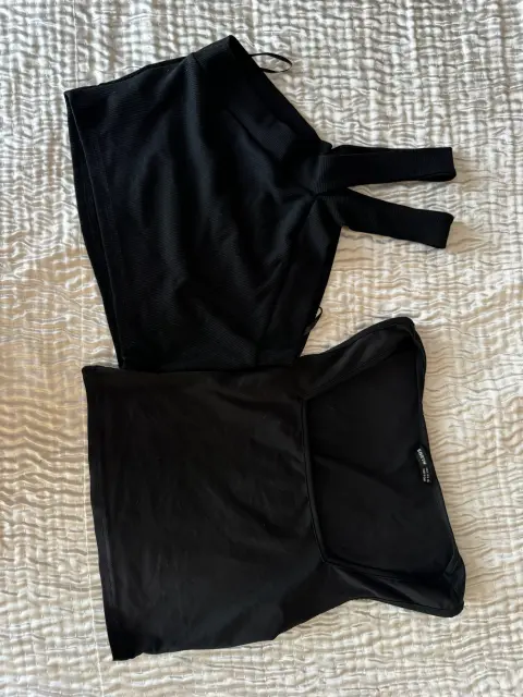 Tops negros. Las dos por el mismo precio. El de la izquierda es M y el otro es S, la vdd no es mucho la diferencia
