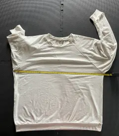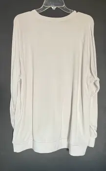 Zenana blusa blanca de cuello redondo y manga larga, textura súper agradable, larga. Ideal para un look casual en días frescos.Talla: 1XColor: blancoMaterial: 57% poliéster, 38% rayón y 5% spandex.Cuidado: lavar en máquina Medidas: ancho de sisa a sisa: 68 cm, largo desde hombro hasta abajo: 71 cm
