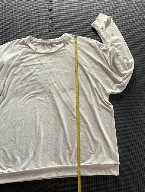 Zenana blusa blanca 👩. Zenana blusa blanca de cuello redondo y manga larga, textura súper agradable, larga. Ideal para un look casual en días frescos.Talla: 1XColor: blancoMaterial: 57% poliéster, 38% rayón y 5% spandex.Cuidado: lavar en máquina Medidas: ancho de sisa a sisa: 68 cm, largo desde hombro hasta abajo: 71 cm