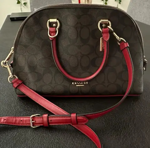 Bolsa Coach Katy Satchel Signature. ❤️Hermosa bolsa tonos Vino con Café y la signatura de la marca muy cómoda y práctica 🤎Subí la mayor fotos posibles para que compruebes su autenticidad realmente bella sin detalles. Lo único que los botones que son para el piso se les está cayendo lo dorado de ahí es más es completamente bella. 💐Cualquier duda con