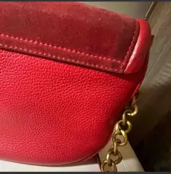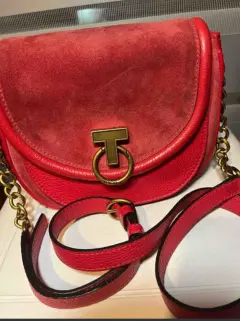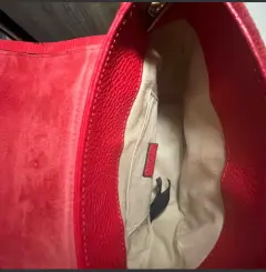 Preciosa bolsa, color rojo. De piel genuina, súper calidad. Modelo T-hold. Original Tous. Se usó muy poco. En la penúltima foto pongo el detalle que tiene que es imperceptible por qué es por dentro. El interior no está manchado. Mide de alto 17cm por 21 de largo.