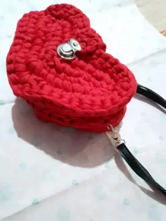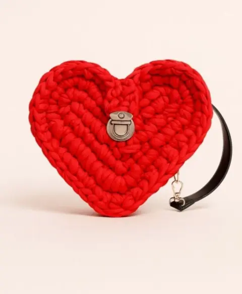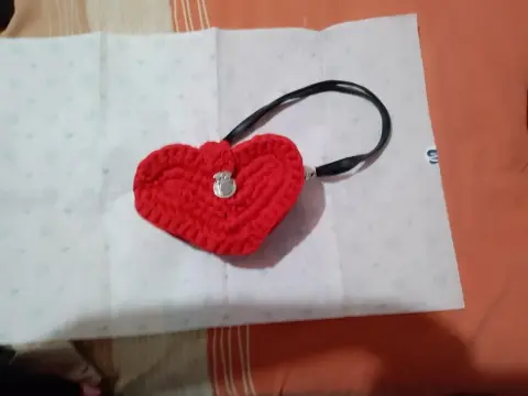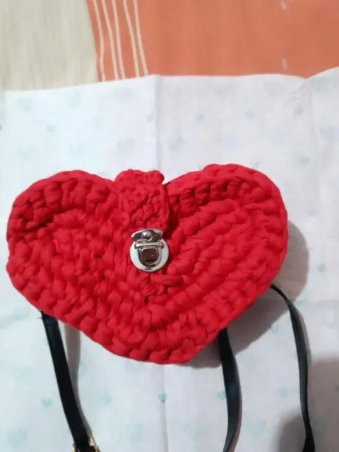 Bolsa cruzada crochet corazon. Bolsa artesanal de trapillo, 20X15x10 CM, correa de simipiel 120 CMTodas las compras incluyen obsequioEnvío a la brevedadHago envío único