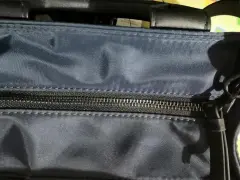 Bolsa tipo tela con vinipiel, strap ajustable, cierre principal e interior, nueva sin detalles, mide 25 largo y 23 alto, tipo cuadrado