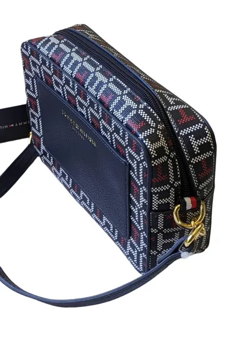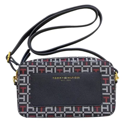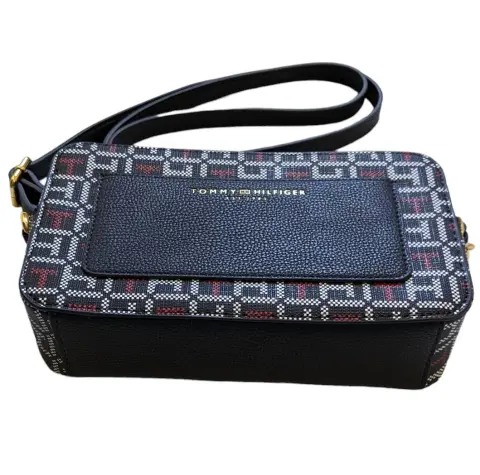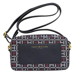 Mini Crossbody Tommy Hilfiger para dama. **CHECAR BIEN LAS MEDIDAS**- Mide: 12 cm de alto, 21 cm de ancho y 5.5 cm de profundidad.- Material exterior: Sintético.- Color: Azul marino con blanco y rojo.IMPORTADA DE ESTADOS UNIDOS.