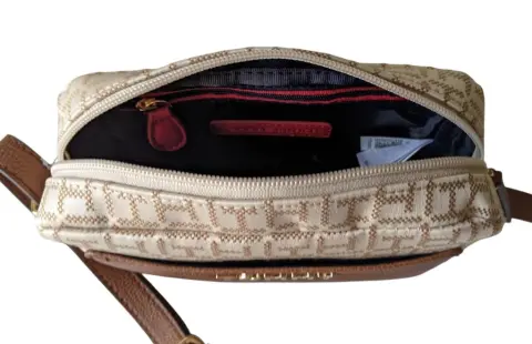 Mini Crossbody Tommy Hilfiger para dama. Mide: 12 cm de alto, 19 cm de ancho y 6 cm de profundidad.Material exterior: Tela poliéster. IMPORTADA DE ESTADOS UNIDOS.