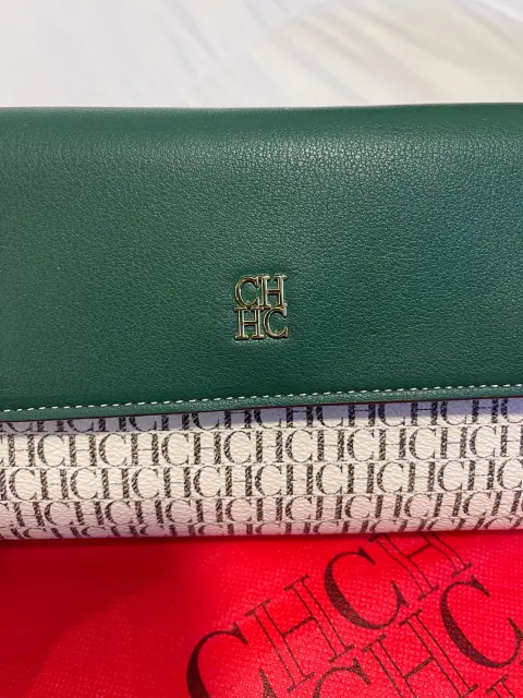 Crossbody Carolina Herrera. Cross body CH color beige con verde, es pequeño y cabe lo escencial