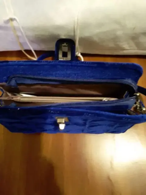 Crossbody de fiesta terciopelo azul. Bolsa de noche de terciopelo, dos divisiones interiores, espacio suficiente para cartera, celular y pañuelos, medidas: 20x14x7 cm, largo máximo de correo de terciopelo 100cmEnvío a la brevedadIncluye cubre polvoTodas las compras incluyen obsequio