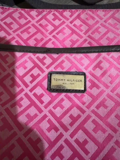 Crossbody Tommy HIlfiger. Preciosa, sin detalles, amplia y de estampado monogram en tono rosa. El strap es tipo deportivo.