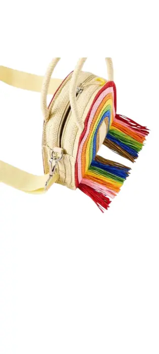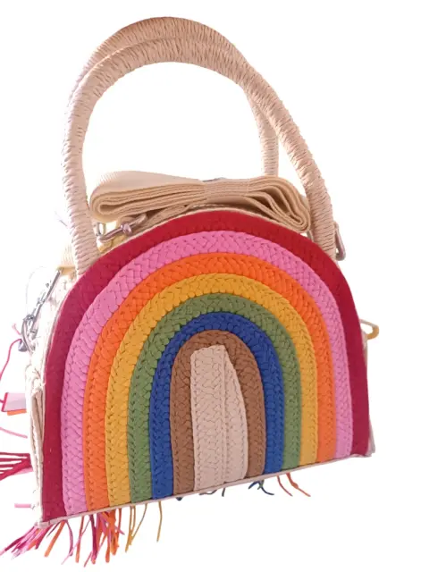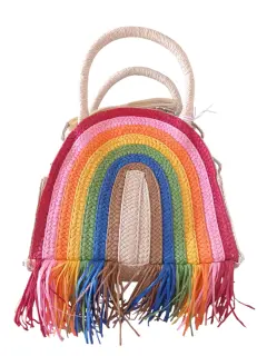 HERMOSA BOLSA TIPO TEJIDA CON ARCOIRIS