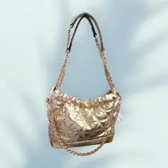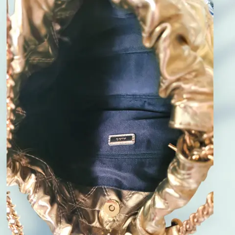 Bolsa de cubo Janewax de la collection Aldo, tamaño mediano, color Dorado con agarraderas de Mano y hombro mitad pleader y cadena metalica, Hecho de materiales sintéticos, compartimento: elegante y funcional para guardar tu teléfono o celular, cartera, Cadena metalica no extraíble/correa de poliuretano, Nuevo a estrenar con etiqueta.
