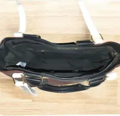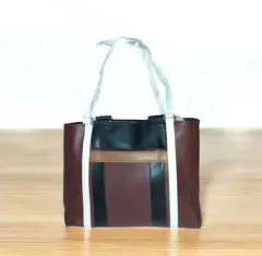 Bolsa de Hombro Tipo Satchel Weekend, color café con acentos blancos, forrado por dentro, 2 compartimientos por fuera y 3 por dentro uno con cierre, hecha de material sintético, nueva a estrenar con etiqueta.
