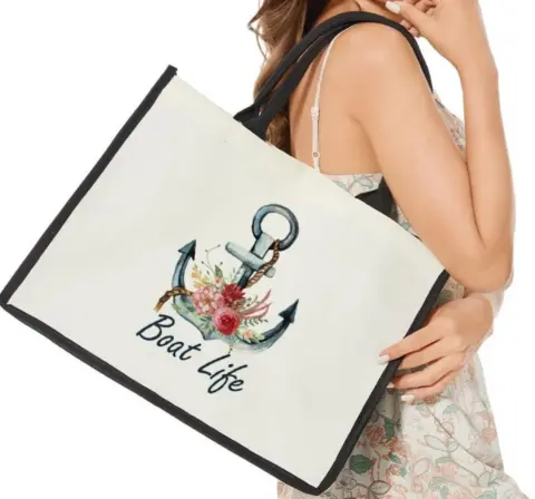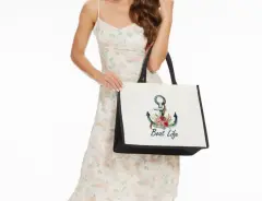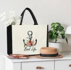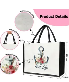 BOLSA DE MANO DE LONA BICOLOR. Fihjm - Bolsa de lona para mujer, bolsas de estética, mide 41 x 32 x 19 cm, modelo disponible solo primera foto