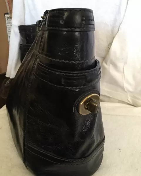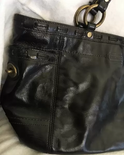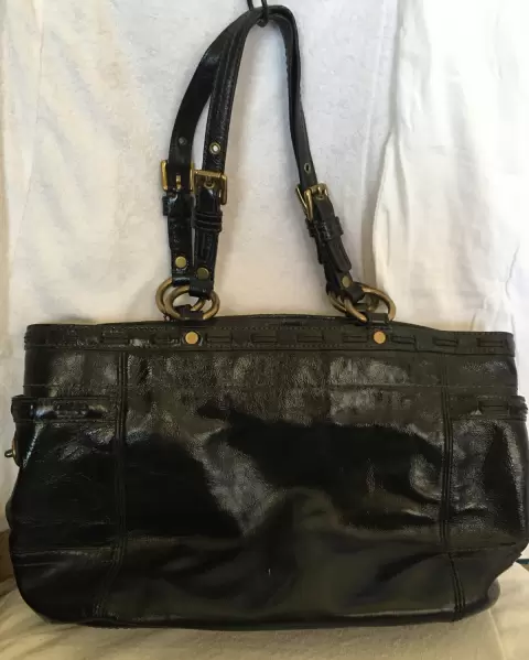 Bolsa de piel Coach negra, condiciones de uso normal, sin detalles, 38 cm de largo, 22 cm de alto