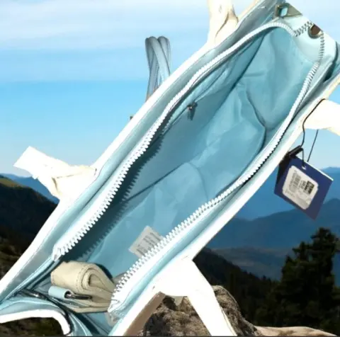Bolsa estilo Totem de Weekend, tamaño mediano, cuerpo de tela tipo mezclilla, forrada por dentro, tiene 2 compartimientos y un bolsillo con cierre, se puede llevar como bolsa de hombro o mano, mide 36cm de ancho con 26cm de largo con agarraderas de 18cm, nueva a estrenar con etiqueta en buen estado cosmético