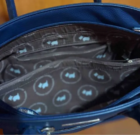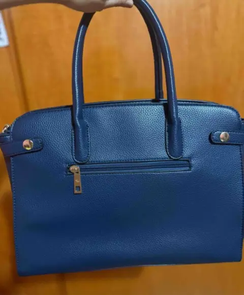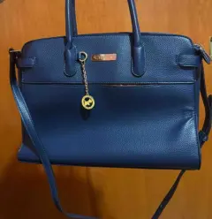 Bolsa de color azul, tamaño mediana, con strap, y cubre polvo, en excelente estado. Tiene varios compartimientos en la parte de adentro, con cierre. Perfecta para la oficina o la escuela. Se usó 2 veces.