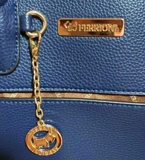 Bolsa Ferrioni Original color Azul (un solo uso). Bolsa de color azul, tamaño mediana, con strap, y cubre polvo, en excelente estado. Tiene varios compartimientos en la parte de adentro, con cierre. Perfecta para la oficina o la escuela. Se usó 2 veces.