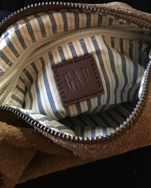 Bolsa GAP, piel chica 25 cm de largo, 18 cm de alto, detalles normales de uso, no está rota ni reparada