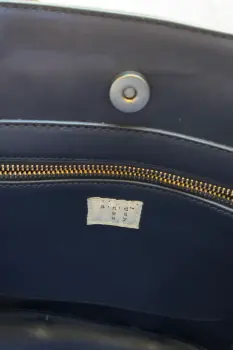 Bolsa de mano/hombro azul marino, con una bolsa al interior con cierre de zipper para guardar artículos mas pequeños. Cabe dentro un iPad, libros, cuadernos, etc.Cierre de la bolsa con botón por la parte de arriba.Medidas: 24cm x 36 cm (altura de 24 cm sin contar agarradera)Material: sintetico