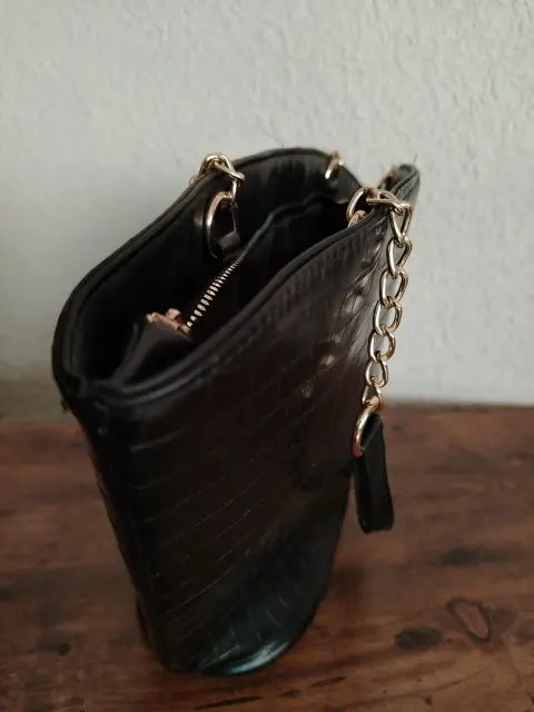 Bolsa negra Andrea. Bolsa de mano estilo animal print color negro, sintético la bolsa es nueva no tiene detalles y le sirven los cierres