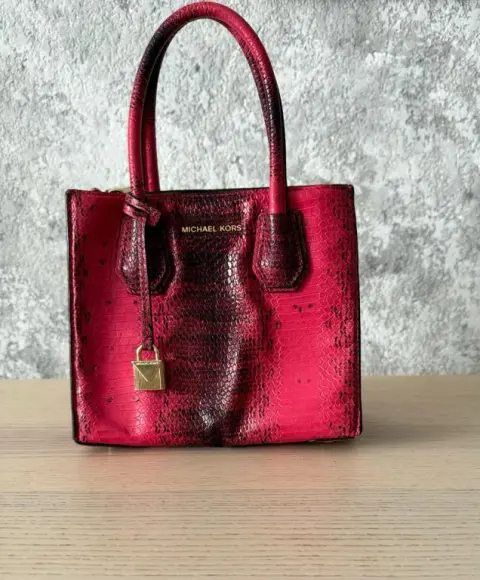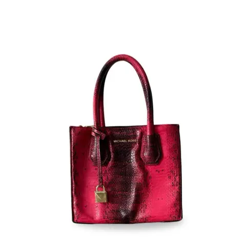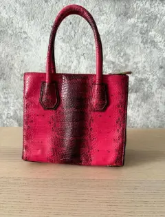 Michael Kors Mercer Medium Snakeskin. Mercer Medium de Michael Kors, Mini Tote elaborado en 100% piel de pitón auténtica, con un impactante acabado en tonos rojo y negro, que resalta su textura natural y patrón exótico. Precio E.U 11 mil pesos, es línea butique una pieza de colección, no tiene strap, desgaste en esquina como se muestra en foto, forro textil, pieza exclusiva y de colección.