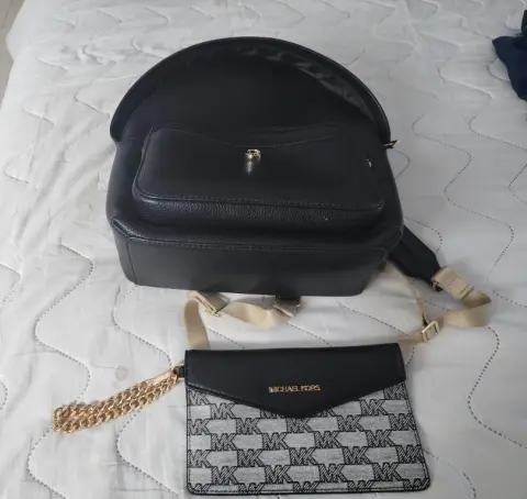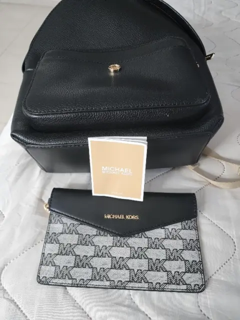 Completamente nueva, de piel comprada en estados unidos en la tienda oficial, sin detalle 2 piezas, modelo Maisie, back pack y cartera medidas de la back pack 17. 5 cms de ancho, 12 de profundidad, 25.5 de alto 3 compartimentos internos en la parte grande, por la parte de afuera un compartimento con cierre y uno mas en la parte de enfrente, bastante espacio para guardar, te va a encantar