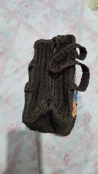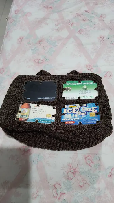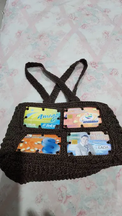 Hecha por personas de la 3ra edad, café puede utilizarse colgada en el hombro o en la mano, muy amplia cuenta con una bolsita en la parte interna mide largo 24 alto 16 base 13 ancho 14 asas 47 arma tu pack y ahorra en envío