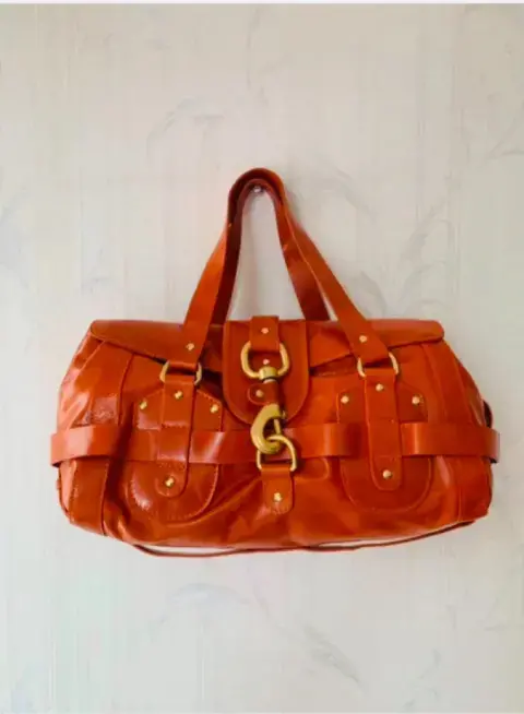 Bolsa 100% piel color naranja NUEVA!. Las bolsas son los completos ideales para cualquier outfit!! NUEVA! Hermosa bolsa de tamaño grande totalmente en piel y con errares en dorado. Muy trendy. Perfecta con cualquier look en café o jeans. Solo tiene un pequeño detalle en el gancho como un poco de óxido que no es visible. No mascotas y no fumadora. Más opciones en mi clóset.