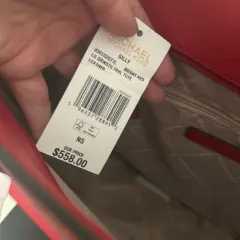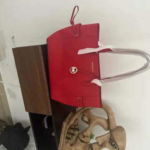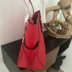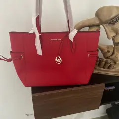 Hermoso Tote MK. Bolsa Mujer Michael Kors Gilly Grande Saffiano Piel Tote Acabado De Los Herrajes Oro Color Rojo Correa De Hombro Rojo Diseño De La Tela Lisa