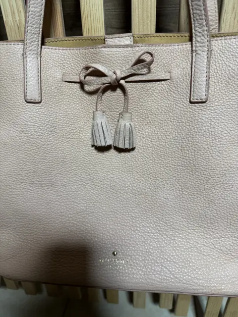 Tote Kate Spade. En tono rosa palo, o rosa baby, diseño elegante con el logo discreto Hecha en piel, y asas largas para llevar cómoda al hombro.