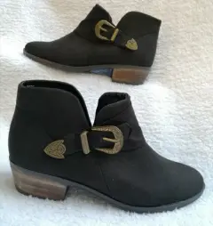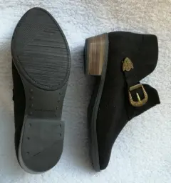 4 botín negro gamuza ebilla. Botín hermoso diseño descubierto de ebilla, suela cómoda y ligera. Textura gamuza suave tipo piel de durazno Color negro. Fácil meter . Mexicano número #24cm. Pregunta o visita mi espacio para más modelos y numeración.