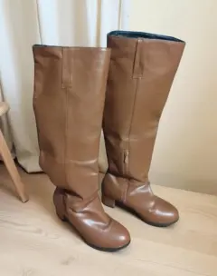 El largo del calzado es a la rodilla, el tacón es cuadrado y bajo mide 5 cm. Ideales para usar con leggins o falda. Punta redonda. Número 3. En perfectas condiciones, solo se usaron en 2 ocasiones.