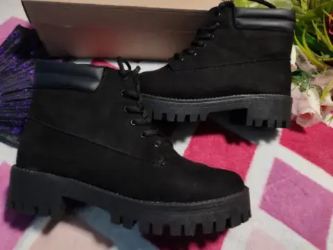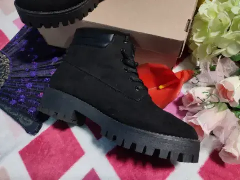 •Te interesa? Escucho ofertas•Deseas varias prendas? armo tu paquetBotas estilo militar negras en No. 5, piel de durazno, suela ligeramente alta, antiderrapante, pequeño acolchado en la parte superior. Están bellísimas 😍