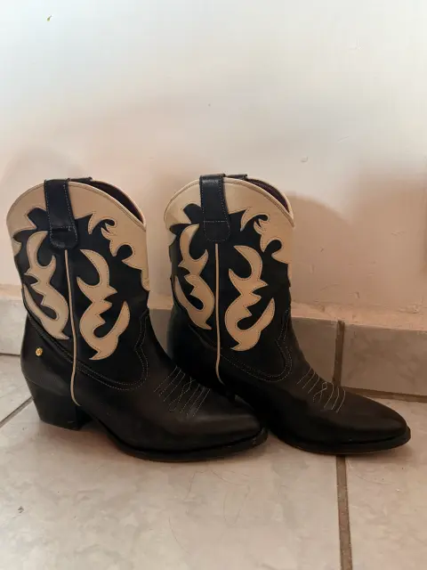botas vaqueras bicolor súper originales son cortas súper cómodas y sin detalles nunca los usé