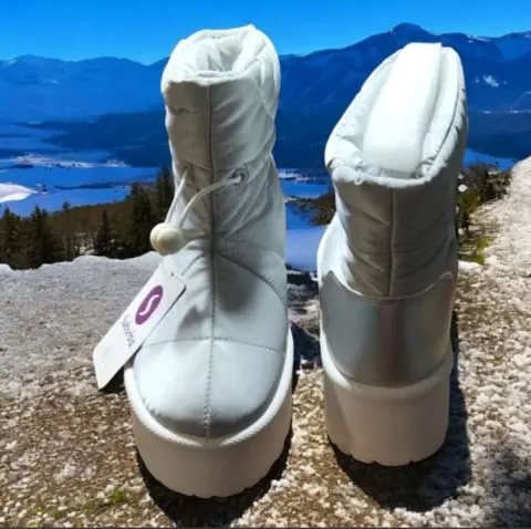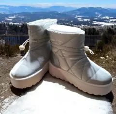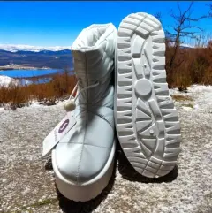 Botines de Invierno Weekend, talla 23, color plateado, forrados por dentro, cordon de ajuste, plantilla suave y acolchada, suela alta de 5cm, antideslizante, hechas de material sintético, nuevas a estrenar con etiqueta en buen estado cosmético.