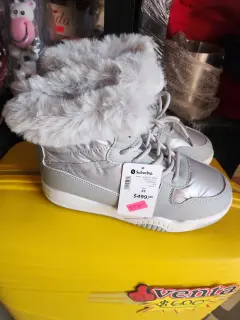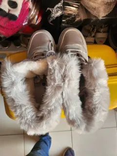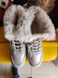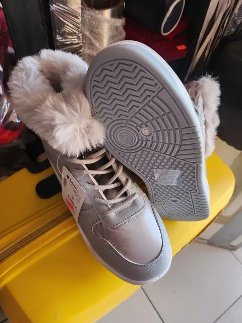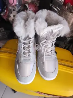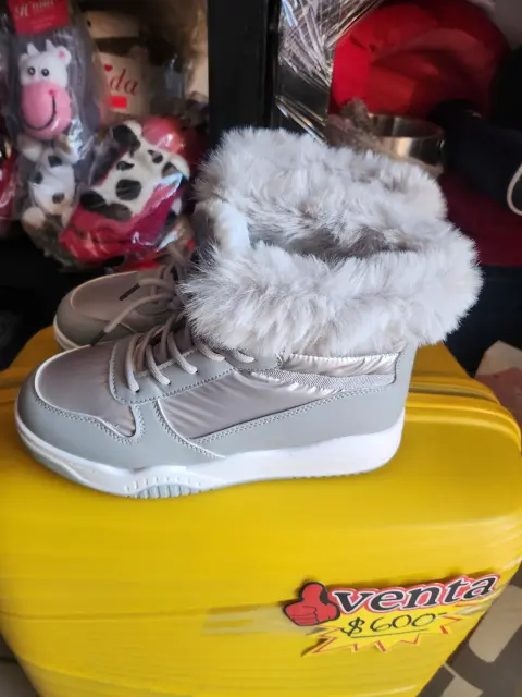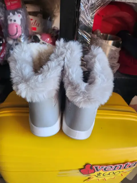 Botines de invierno Weekend, talla 25, color gris con Fondo blancoen peluche y agujetas Blancas, con plataforma corrida de 3cm de alto, Punta de almendra, hechos con material sintetico, nuevas a estrenar