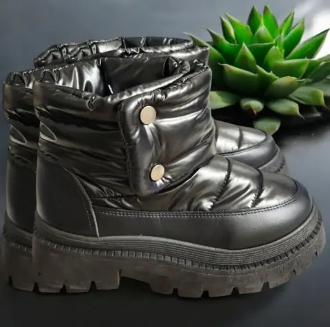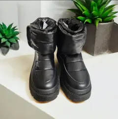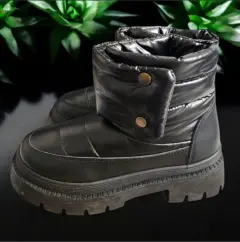 Botines para mujer de invierno weekend, talla 3, color negro solido, cierre de velcro a la Altura del tobillo, plantilla acolchada, forrados con tela suave por dentro, suela antideslisante de 2cm de alto, hechas con material sintetico, nuevos a es