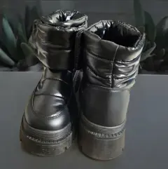 Botines para mujer de invierno weekend. Botines para mujer de invierno weekend, talla 3, color negro solido, cierre de velcro a la Altura del tobillo, plantilla acolchada, forrados con tela suave por dentro, suela antideslisante de 2cm de alto, hechas con material sintetico, nuevos a es
