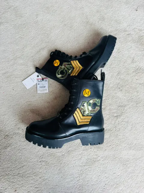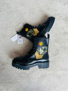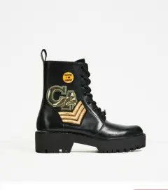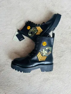 Las combat boots son un estilo que nunca pasa de moda!! NUEVAS!! Bellísimas botas en piel con parches de estilo militar para darle un aire un poco masculino. Sin detalles. Abren y cierran de los laterales por dentro con cierre. Perfectas con jeans o incluso con falda denim. Con muy buen estilo. No mascotas y no fumadora. Más opciones en mi clóset.