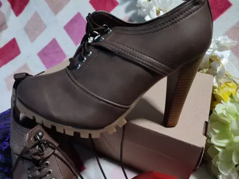 Botín de tacón #5. •Te interesa? Escucho ofertas•Deseas varias prendas? armo tu paquete✨ Botines cafés, de agujeta, tacón delgado 11cm, duels antiderrapante. #5