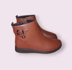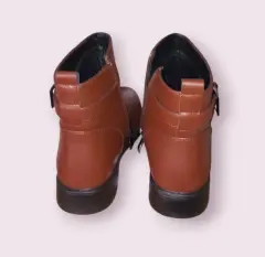 Botines casuales de Cuero Weekend, talla 4, color cafe camello, plantilla suave acolchada, cierre al lado, suela sintetico corrida antideslisante, forradas por dentro, hechas de material sintetico nuevas a estrenar sin etiqueta en buen estado.
