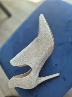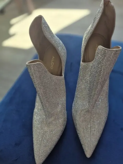 Botines de tacon con pedrería plateada brillante. Hermosos y elegantes botines texturizados con pedrería plateada, estilizan tu figura y son versatiles pata combinar, un solo uso, prácticamente los vas a estrenar!